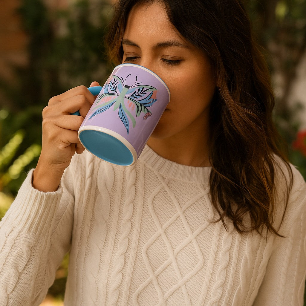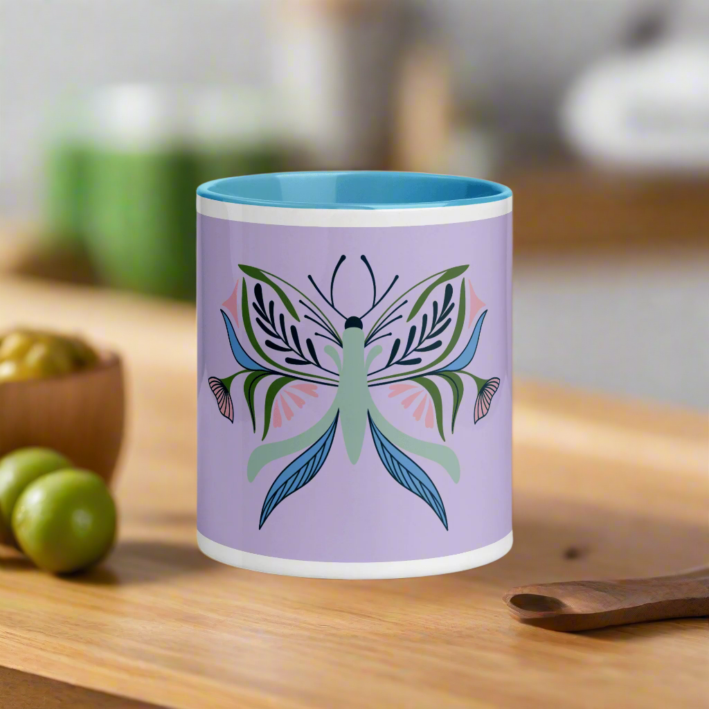 Sip your morning peace with this beautifully serene Butterfly Moth Bloom Mug, designed to lift your spirit and elevate your mindset. Featuring a delicately stylized butterfly in lush greens, blues, and soft pinks on a soothing lilac background, itβs more than just a mug β itβs a gentle reminder to bloom, evolve, and fly free.